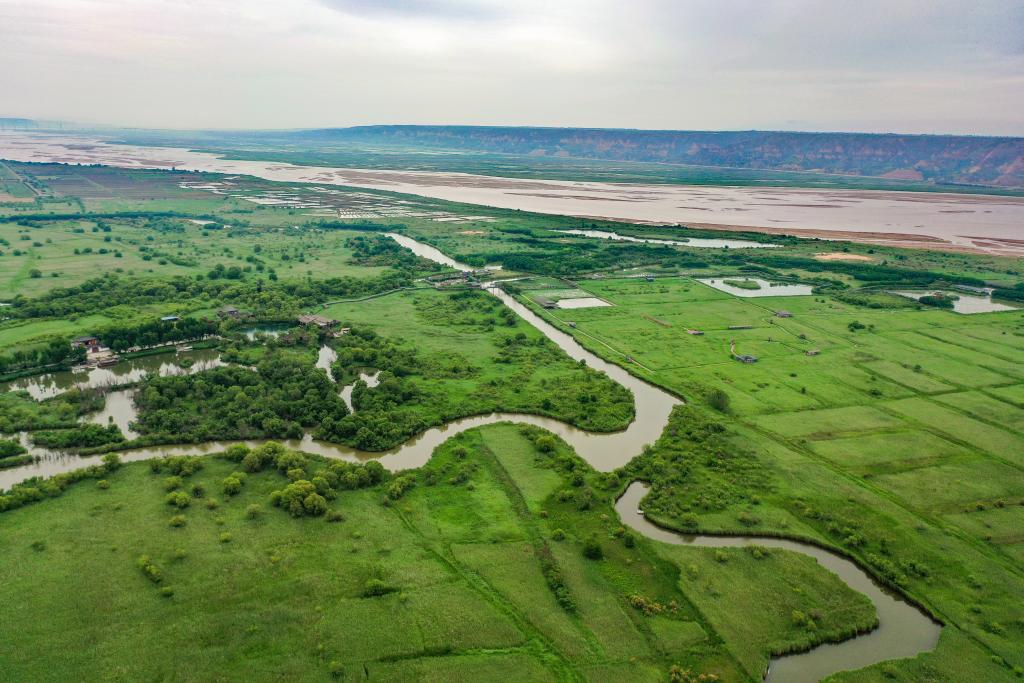 2023年6月2日,无人机拍摄的陕西省渭南市合阳县境内的黄河湿地。新华社发(赵哓罡 摄)