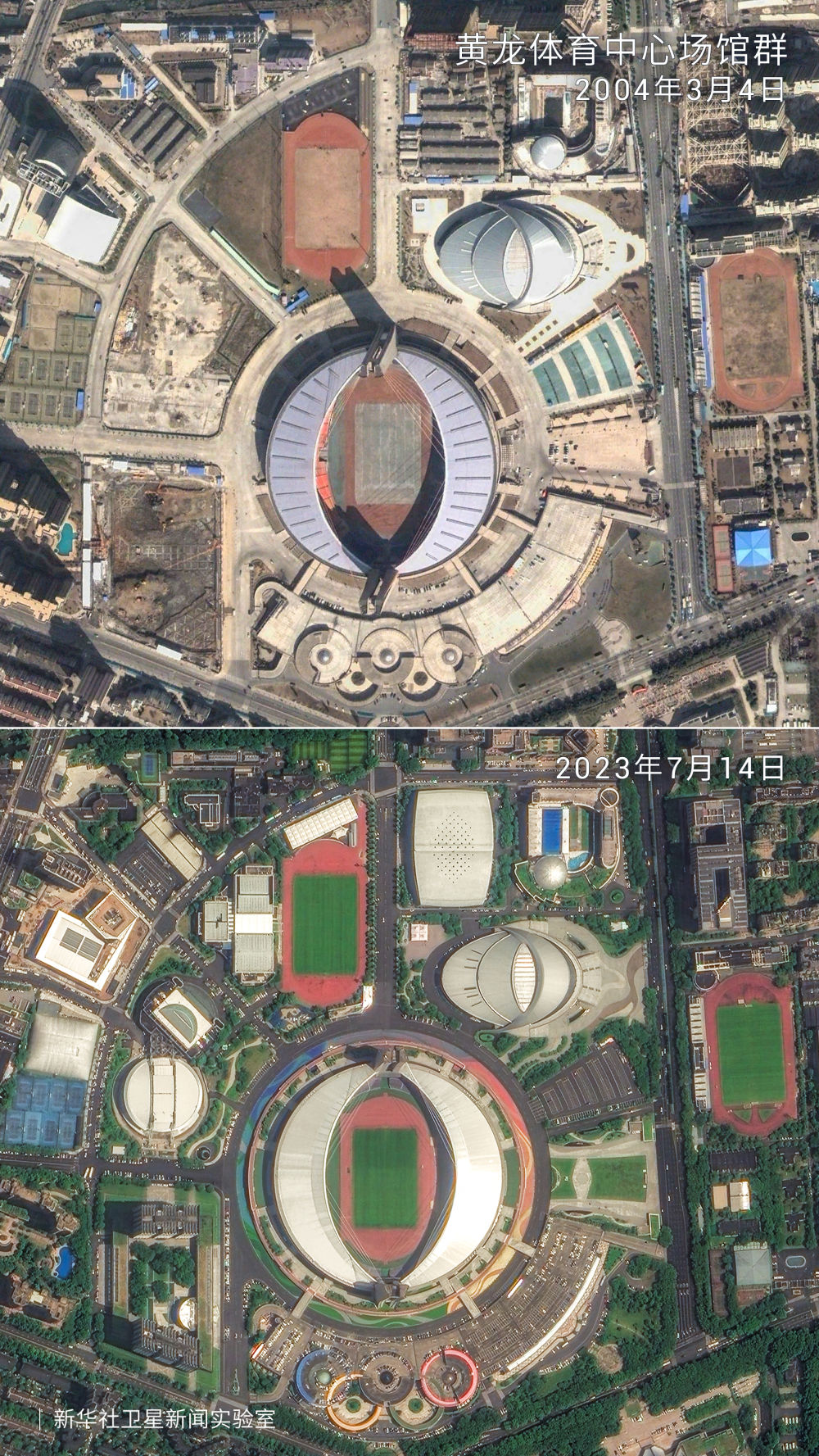 ↑这是卫星拍摄的黄龙体育中心场馆群