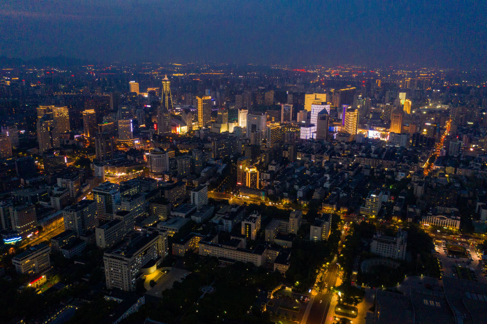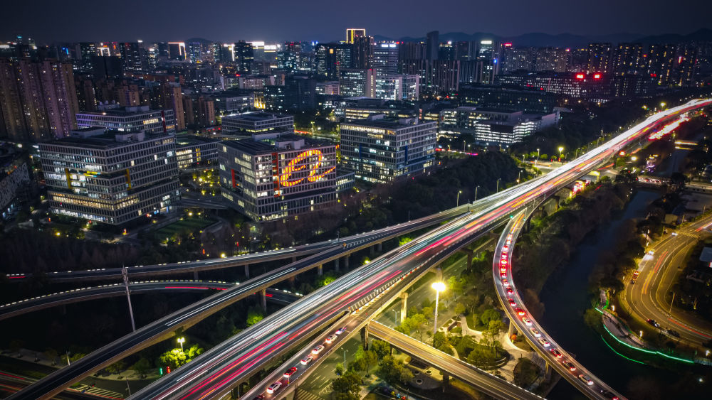 ↑这是2023年6月8日拍摄的杭州城区夜景(无人机照片)。新华社记者 徐昱 摄