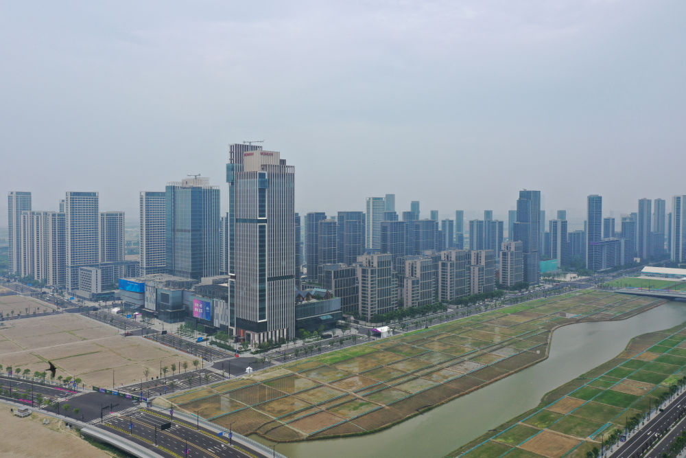 ↑这是2023年6月16日拍摄的杭州亚运村(无人机照片)。新华社记者 黄宗治 摄