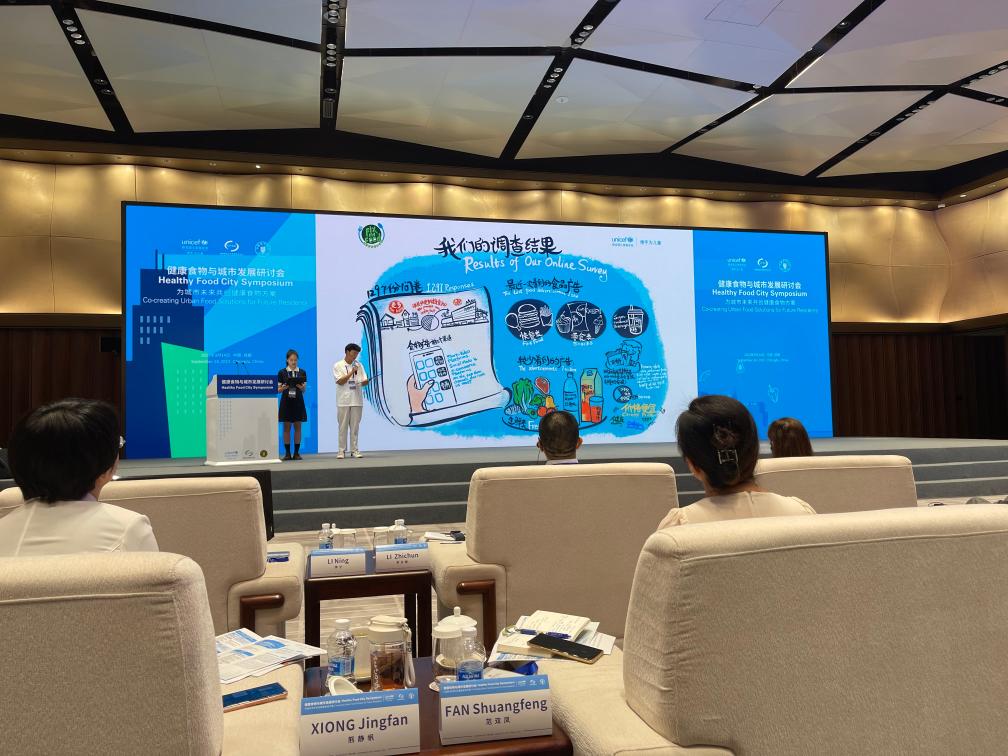 来自成都的20岁学生胡清源在会上分享了联合国儿童基金会“我要更健康的食物”公益倡导活动青年咨询工作坊的讨论结果。据介绍,这次活动在北京和成都邀请超过60名15至24岁的青年参与。“我要更健康的食物”是联合国儿童基金会和年轻人共同发起的一项倡议,旨在改善亚太地区的食物环境,提升公众意识。