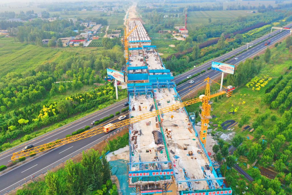 S242聊城绕城段改建工程跨济聊高速大桥建设现场。受访单位供图
