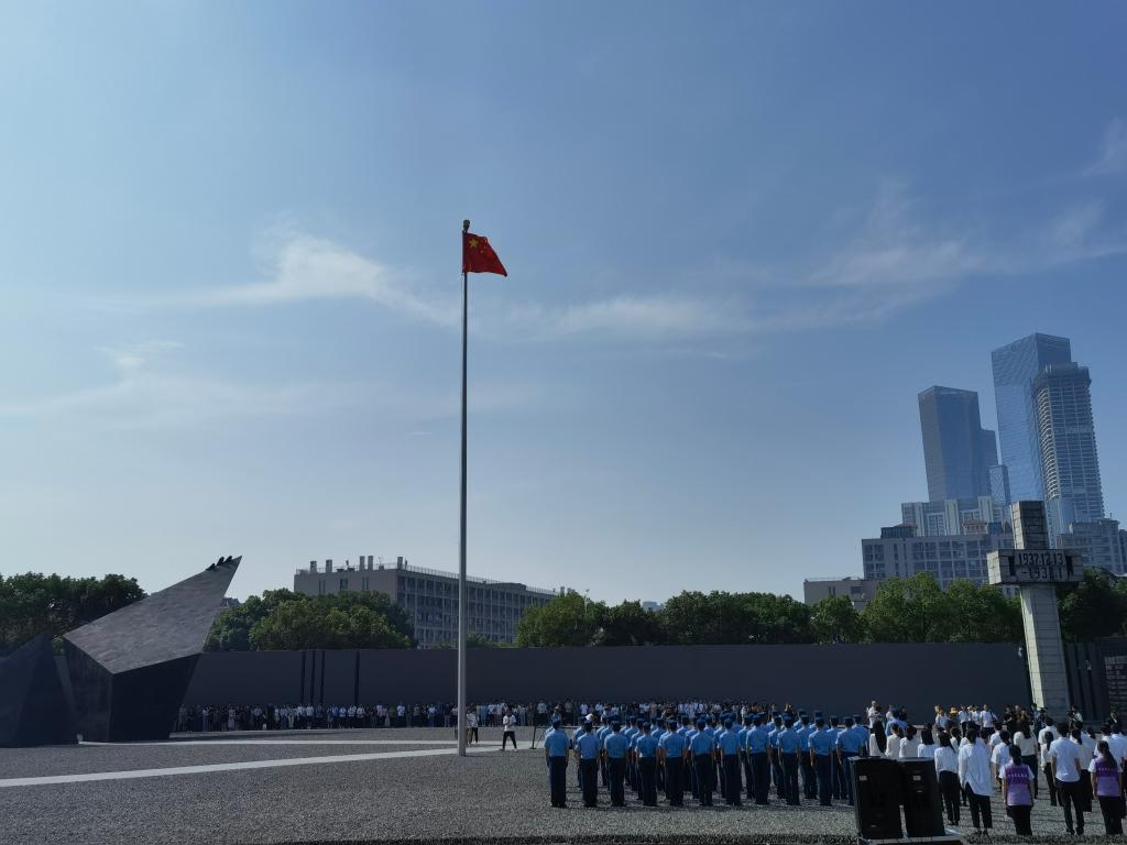 上午9时18分,升国旗、撞响和平大钟仪式在纪念馆公祭广场举行。全体人员面向国旗肃立致敬,脱帽行注目礼,少先队员行队礼,全场高唱中华人民共和国国歌。