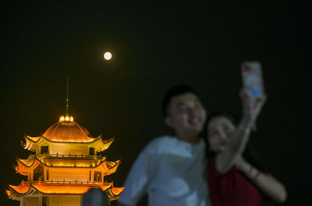 9月29日,市民在湖南省永州市道县潇水河畔留影。新华社发(蒋克青 摄)