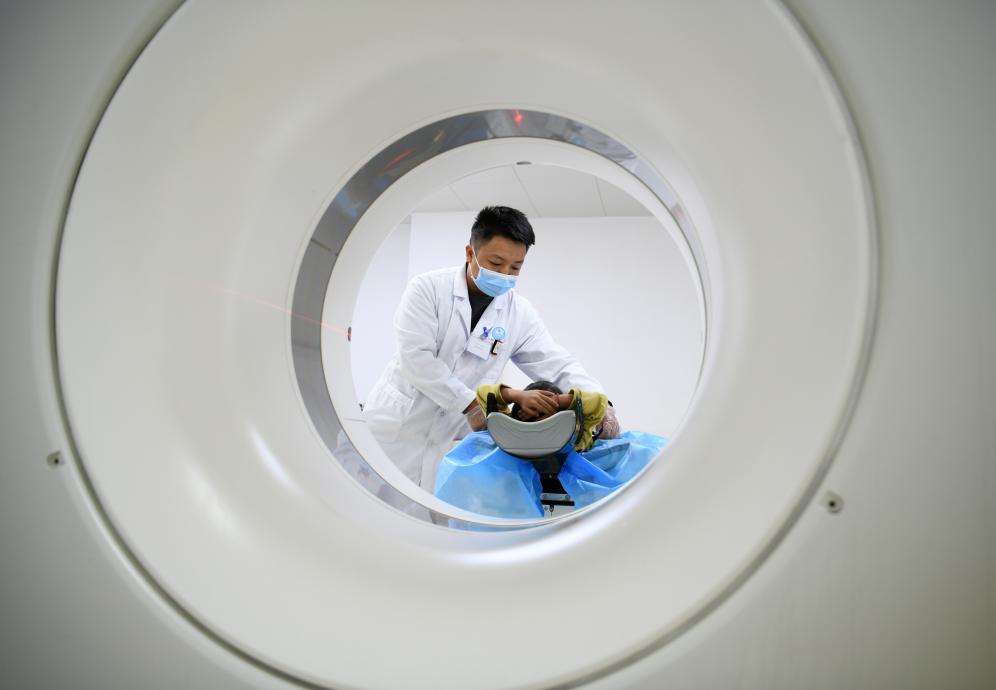 9月29日,在云南省丽江市人民医院,医务人员准备为患者做CT检查。 新华社发(赵庆祖摄)