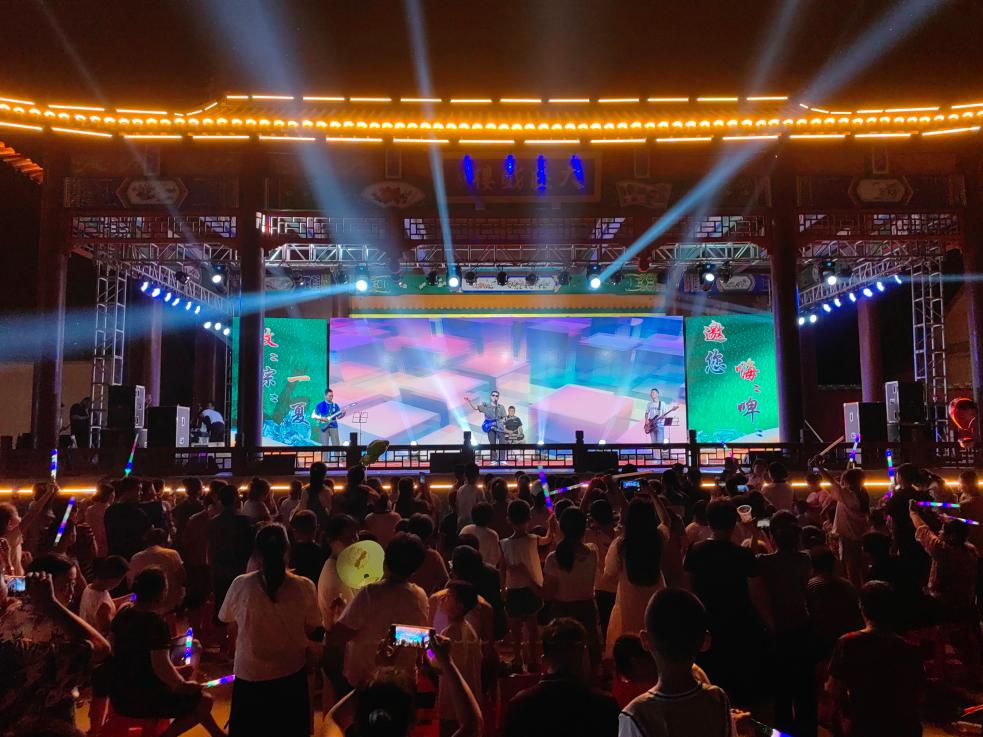 8月4日至6日晚,阳信县(大庄)大学生乡村音乐节在劳店镇曲艺非遗文化广场连续唱响。新华社记者邵琨 摄