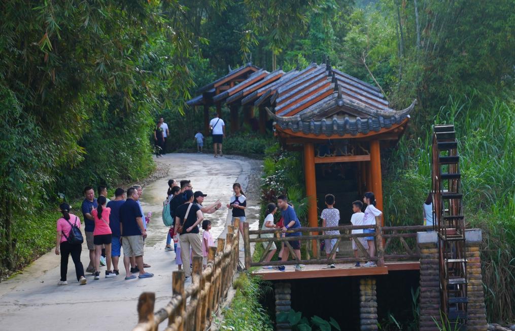 10月2日,游客在海南省五指山市水满乡毛纳村游玩。新华社记者 王军锋 摄