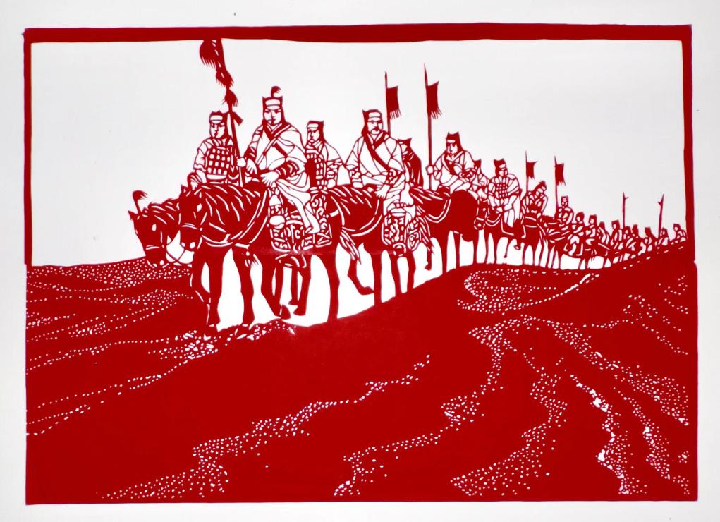 出生于1964年的钟林强是一位传统剪纸爱好者,他的家距离张骞诞生地仅一公里左右。从小听张骞故事长大的钟林强花了2年时间,剪出了38幅张骞出使西域图,以连环画的形式展现张骞“漫从西域度流沙”的艰辛旅程。