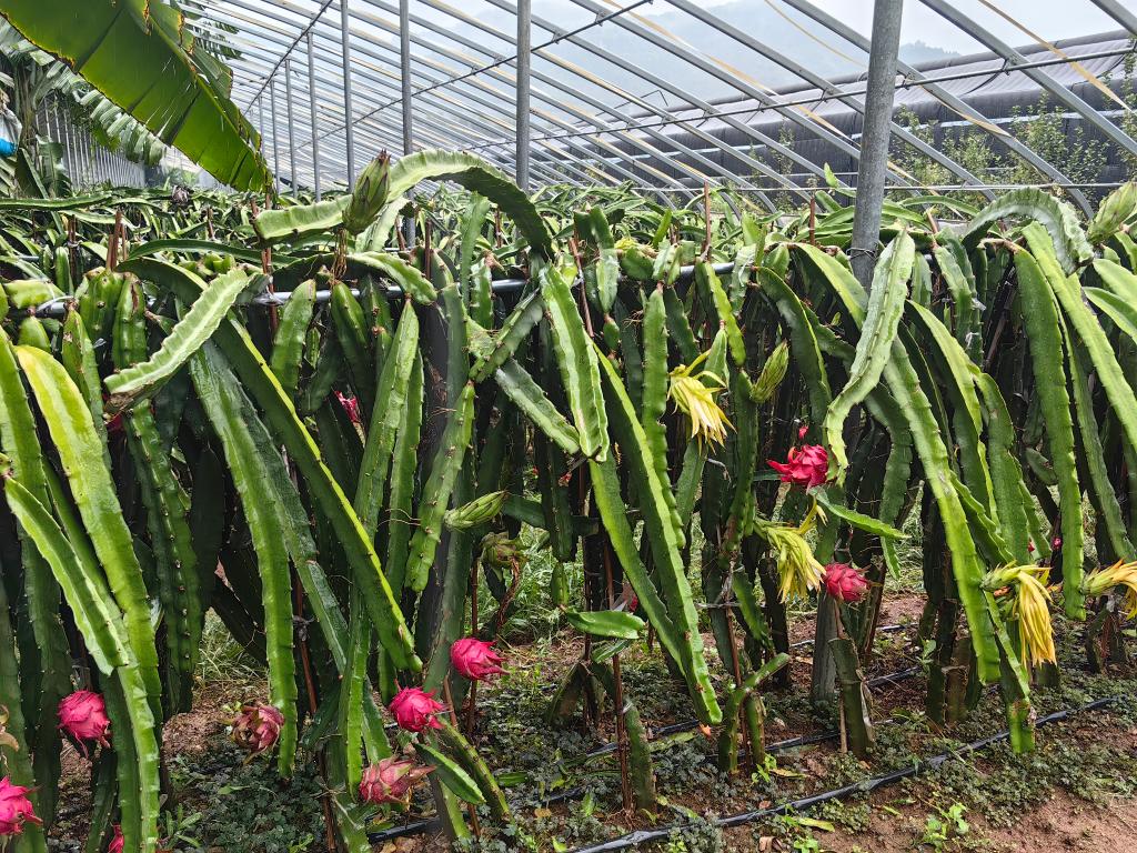 南麻街道办事处许村大棚里的火龙果。(新华社记者邵琨摄)