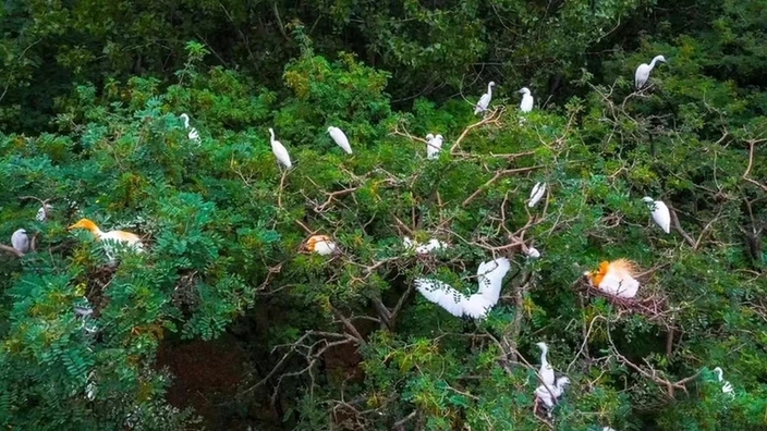 这是在山东菏泽曹县魏湾镇张康村拍摄的成群白鹭。新华社记者王阳 摄