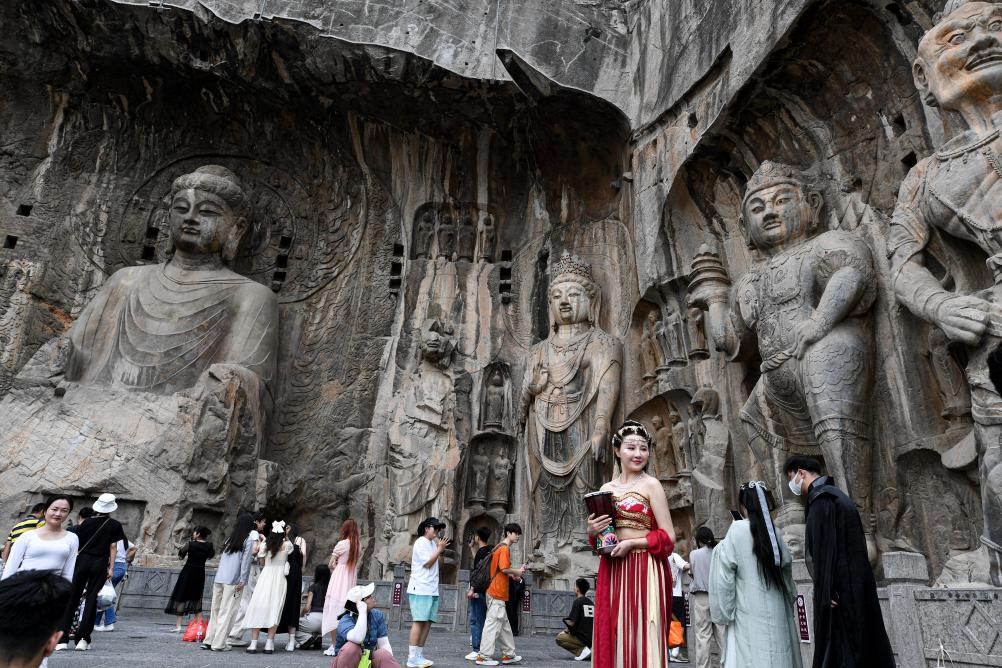 游客在龙门石窟参观游览。新华社记者 李嘉南 摄