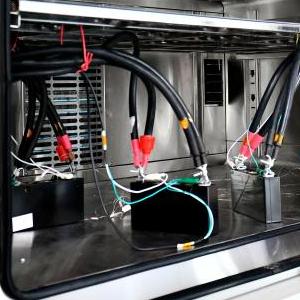 在位于枣庄的国家锂电池产品质量检验检测中心,工作人员对锂电池进行检验。新华社记者郭绪雷 摄