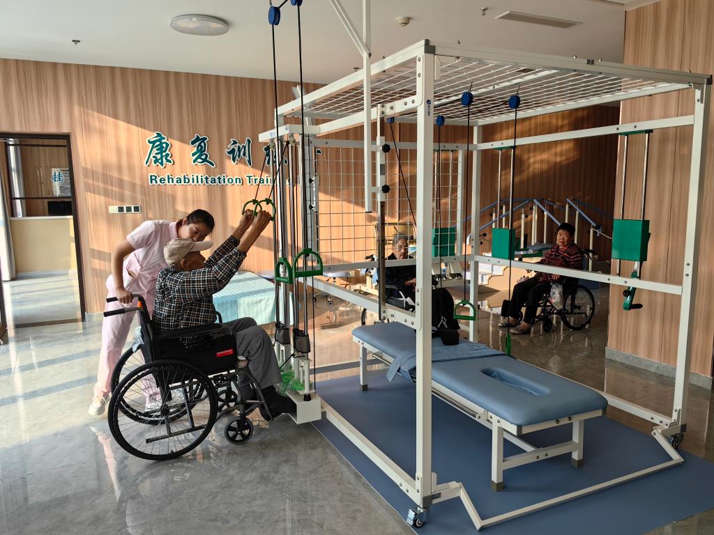 走进潍坊燕达医养服务中心,几名老人正在护理员带领下做康复训练。楼道扶手、卫生间防护、防滑地垫等一应俱全。理疗室里摆放着心电图机、简易吸痰器、呼吸机、供氧设备等。