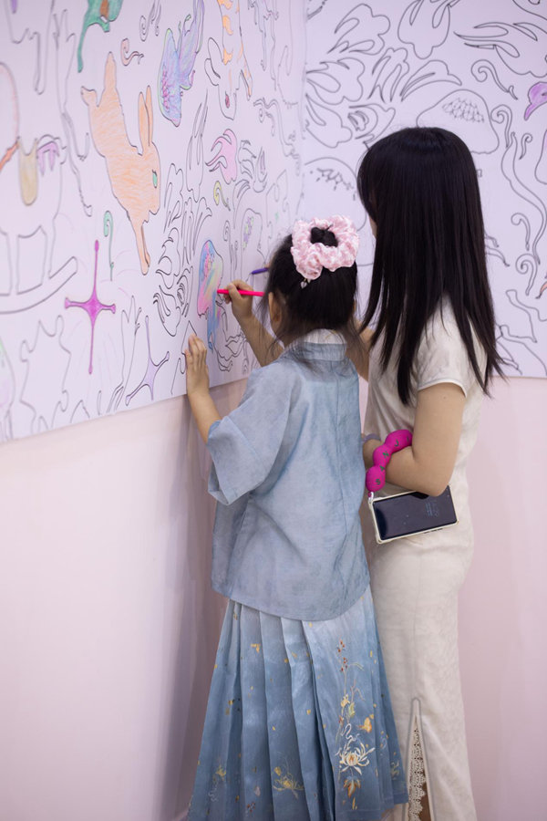 “这次展览的主题叫‘像孩子一样’,立意上,希望大家找回童心,找回本真的自己,会为了一点点新的发现和改变欢呼雀跃。”艺林堂“第三代堂主”余寅介绍到,艺林堂不仅在颜色上下足了功夫,还研制出一种新的叠金彩工艺。
