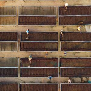 普洱市思茅区一企业的工作人员在翻晒咖啡。(思茅区委宣传部供图)
