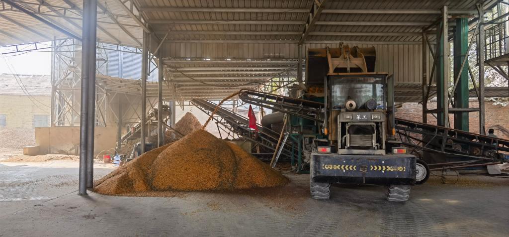 农家人玉米种植专业合作社的脱粒机和烘干机正在作业。(新华社记者叶婧 摄)