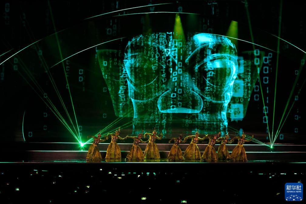 10月18日,在第81届世界科幻大会开幕式上,演员在表演《揽星》科幻秀。新华社记者 沈伯韩 摄