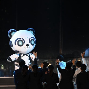 备受关注的本届雨果奖奖杯底座也在开幕式上揭晓——一只从时空隧道探出头来的熊猫,仰望着火箭向未来招手,向科幻致敬。据了解,这也是中国文化元素第一次出现在雨果奖奖杯底座上。现场,2023成都世界科幻大会组委会副主席、雨果奖评选组组长戴夫·麦卡蒂将雨果奖奖杯底座与奖杯合为一体,以此寓意合作连接,人类才有无限美好的未来。