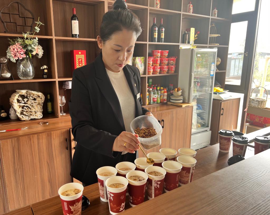 10月12日,在稷山国家板枣公园内的唐枣星空庭院度假区,工作人员正在制作枣咖啡。新华社记者 柴婷 摄