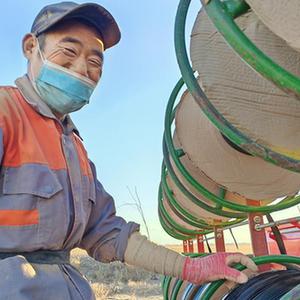除了把化肥、麦种播进土壤,铺设滴灌带也是一道重要工序。搭档赵平、窦刚默契地跟在后方,查看用料消耗和滴灌带铺设情况。