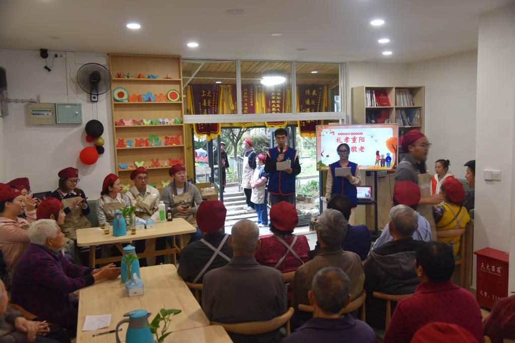 重阳节当天,贵阳诚善助老公益互助餐厅里的志愿者为老人们组织活动。新华社记者李凡 摄