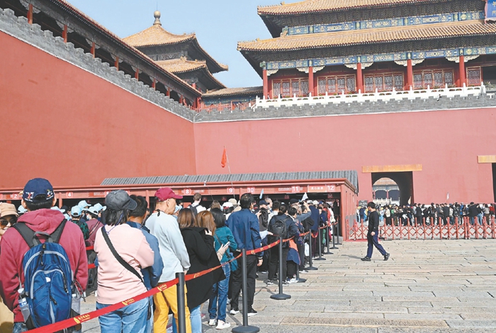“实施新举措,对古建、文物和观众的安全都有好处。”临近11时,故宫博物院保卫处处长王波在太和殿广场接受采访时说,观众平均分散到上下午,能够缩短排队等候时间。“广场上不会人挤人,安检的压力也减小了。通过降低人群拥挤聚集,对保护文物古建安全也起到积极作用。” (记者 刘冕)