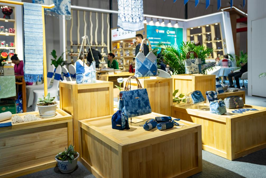 文博会上展示的扎染系列文创产品。新华社记者陈欣波 摄