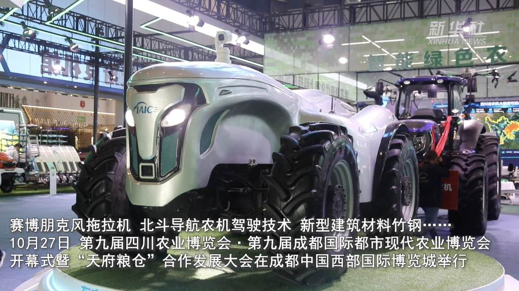 赛博朋克风拖拉机、北斗导航农机驾驶技术、新型建筑材料竹钢……10月27日,第九届四川农业博览会·第九届成都国际都市现代农业博览会开幕式暨“天府粮仓”合作发展大会在成都中国西部国际博览城举行。
