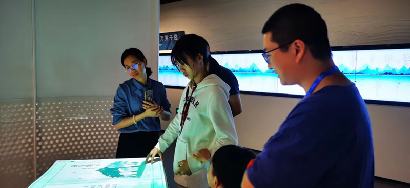 一部浙江文学史,有说不尽的风流、道不尽的文章:先秦时期的《越人歌》,魏晋时期的文字风流,盛唐时期的唐诗之路,风雅宋韵的诗词歌咏,元明清时期的小说传奇,再到近现代占据中国文学半壁江山的“文学浙军”…… 数字体验空间的亮点,就在于这幅基于《浙江通志·文学志》制作的数字长卷,以历史为经、艺术为纬,以文学为魂、数字为形,呈现浙江文学悠悠历史。对于感兴趣的事件、人物,游客通过扫码,便可在十余秒内获得智能生产的知识点文化短视频,成为第N位文化守护者。通过联通文学大数据中台,这幅长卷实现了与时俱进、实时更新,未来浙江文学不断发展,事件还能不断更新进来,真正做到持续生长,呈现浙江文学继往开来、蓬勃发展的精彩篇章。
