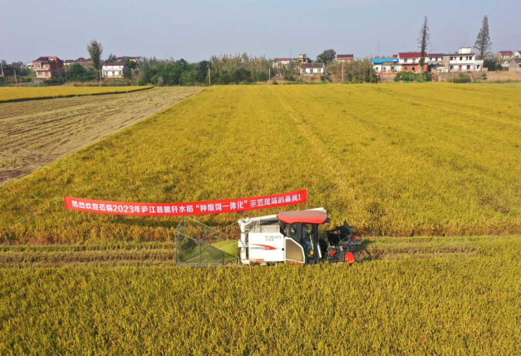 在合肥市庐江县同大镇连河村,千亩脆秆水稻示范田迎来丰收季。亩产650公斤稻谷加上亩产1.4吨的脆秆饲料,“一稻两收、双份收入”让连河村的村民尝到了科技丰产的甜头。