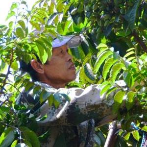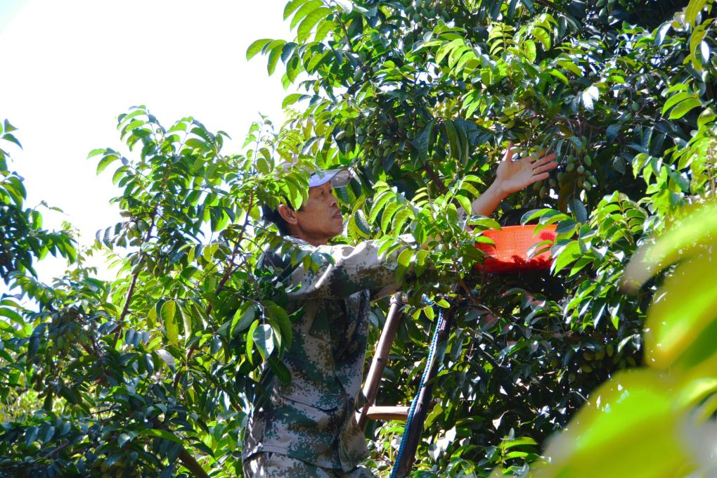 张孔江正在采摘橄榄。新华社记者李昊泽 摄
