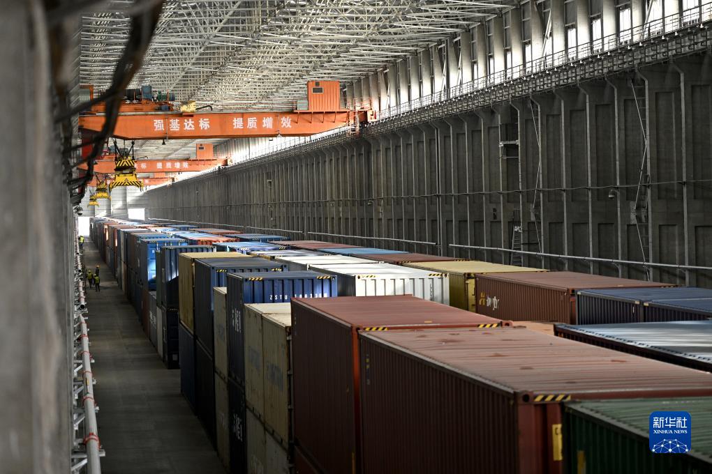 这是中国铁路乌鲁木齐局集团有限公司阿拉山口站换23集装箱换装库(11月4日摄)。新华社记者 李鑫 摄