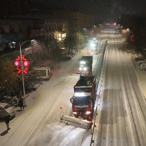 各地市主城区采取大型清雪车辆和环卫人员联合作业,确保交通干道、政务通道、重要商圈雪停路净。