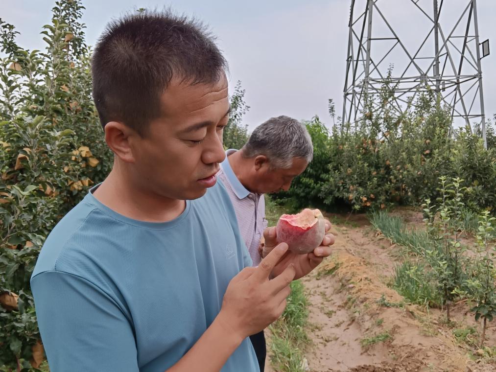马志瑞在田间地头推销红寺堡区的农产品。(受访者供图)