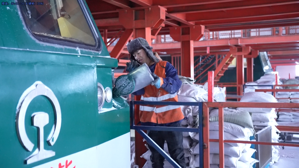 每逢降雪天气,每台机车在启动和停车时都要撒上机砂。为了保障机车运行,苗壮和班组的其他成员随时都要到仓库将防滑砂运到机车整备棚。