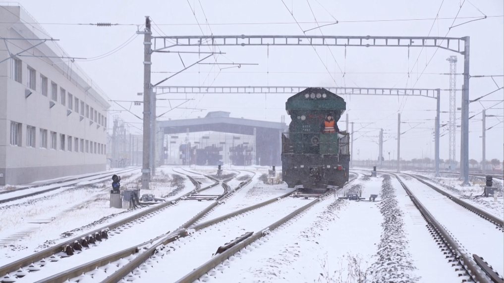苗壮所在的车间主要负责机车出入库,厚厚的积雪让道岔无法正常运转,为了保证机车正常入库,苗壮一有空还要和其他同事一起清扫道岔,确保极端天气下铁路运输秩序畅通无阻。