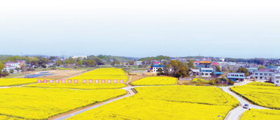 今年春天,在丰裕村首批整理好的土地上,试种的油菜形成油菜花海。永安镇供图