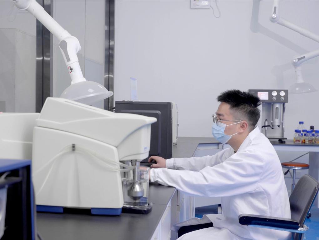 福建强纶新材公司精密实验室做粒度检测实验。 新华社记者秦宏 摄
