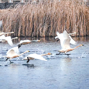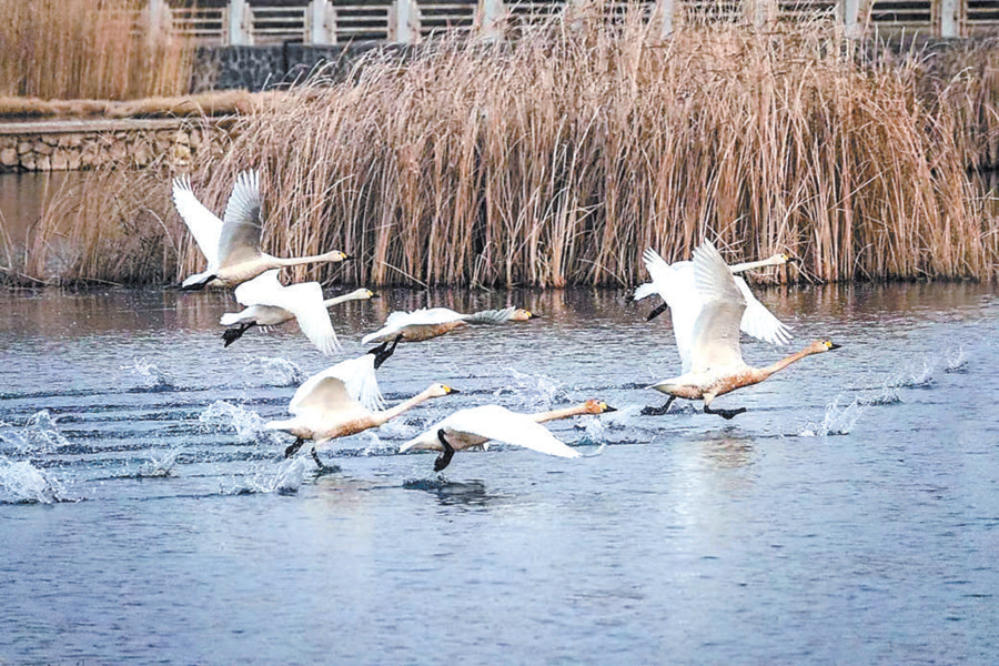 “我在这地方拍天鹅四五年了,每年一入冬准能看见天鹅群。这些年,河道越来越宽,水也越来越清,野生鸟类越来越多了。”一位拍鸟爱好者说。