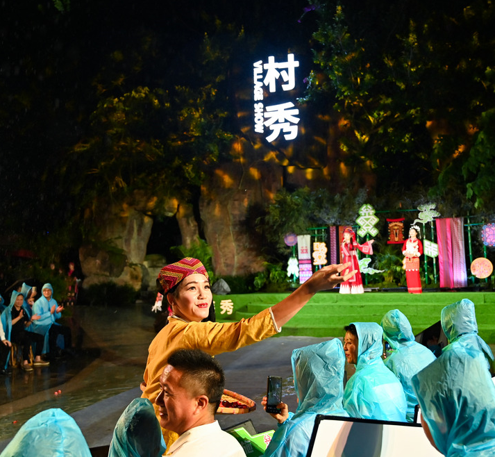 “村秀”舞台上,部分村民穿上融入现代设计元素的民族时装,民族与时尚、传统与现代的碰撞,让具有深厚历史底蕴的民族服饰焕发出新的生机与活力。