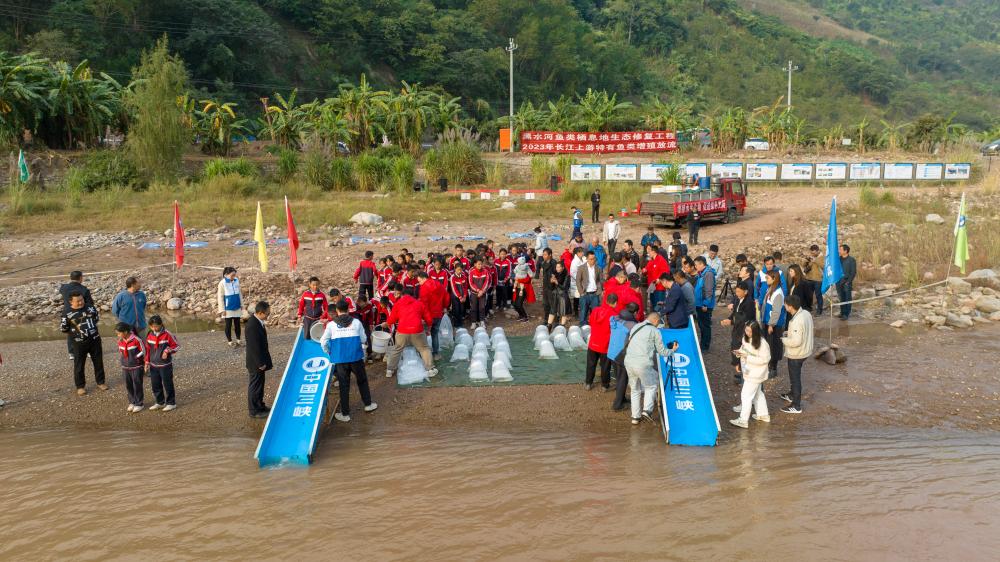 11月17日,2023年度长江上游特有鱼类放流活动在四川省宁南县举行。(中国三峡集团供图)