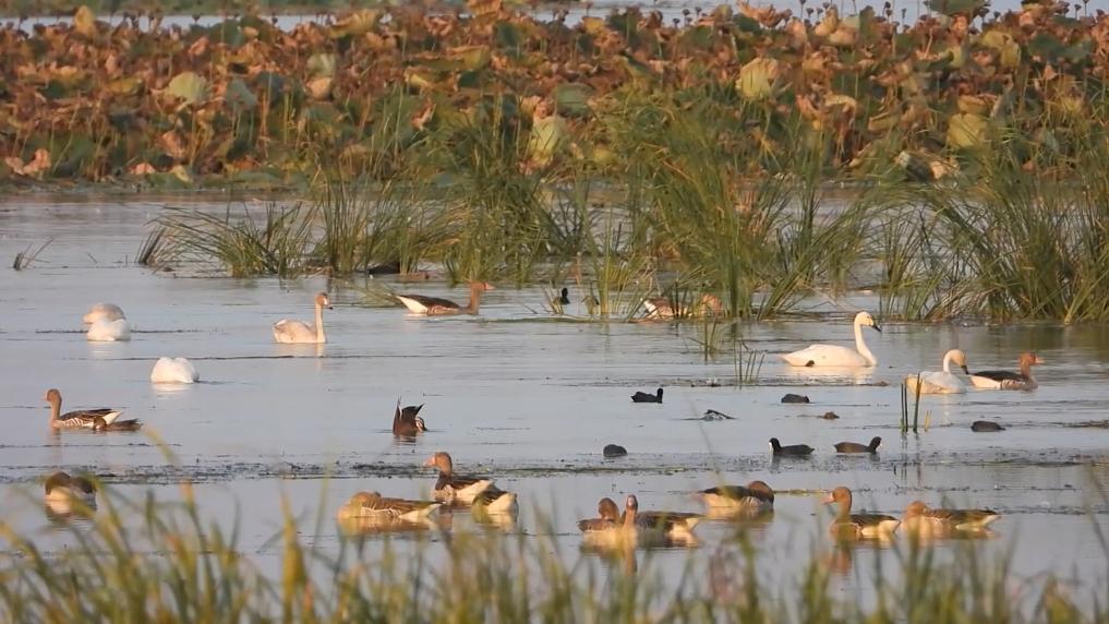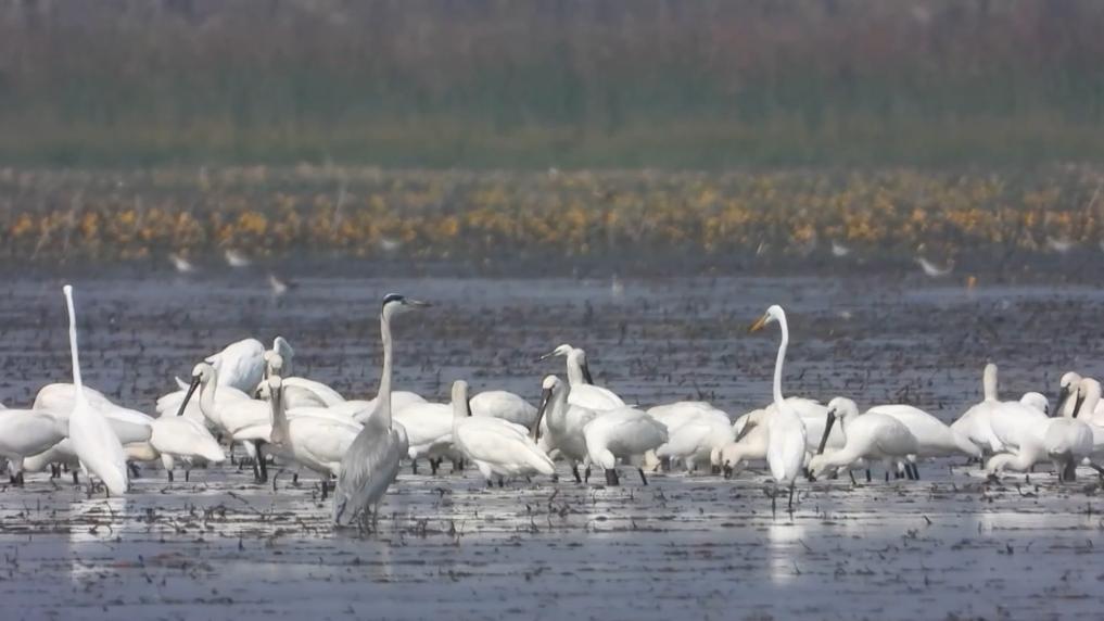 中国最大的淡水湖鄱阳湖是白鹤、东方白鹳、小天鹅等珍稀候鸟钟爱的越冬“天堂”。每年有数十万只候鸟飞抵这里,最高峰时可达到约80万只。