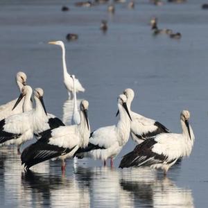 此次监测,不仅东方白鹳以68只创下历史新高,监测人员在同一区域还记录到276只国家二级保护动物白琵鹭及大量其他水鸟。