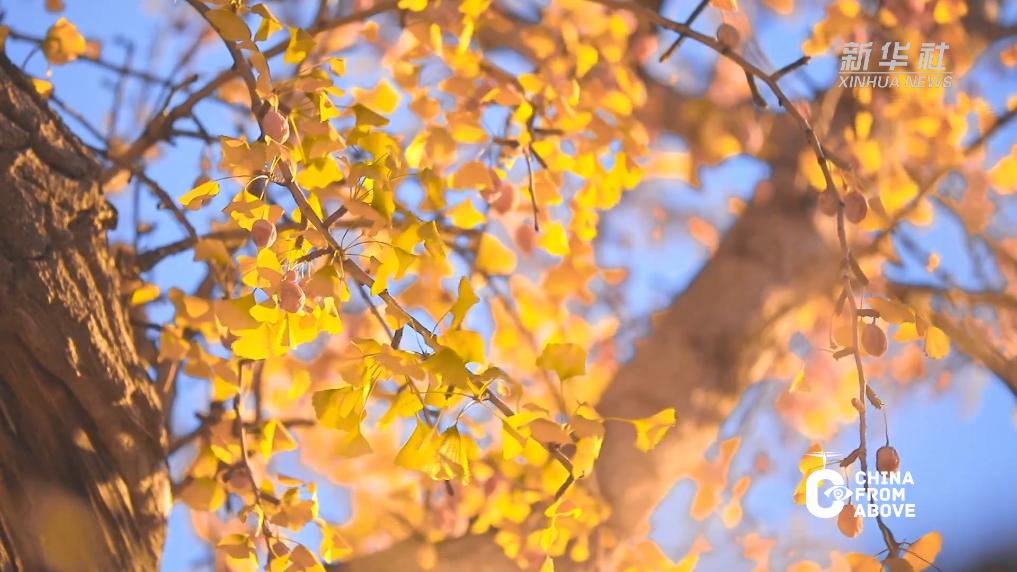 初冬时节,在河北省秦皇岛市海港区石门寨镇浅水营中村,有一株千年古银杏树迎来最佳观赏期。一片片黄灿灿的银杏叶,在午后阳光照射下熠熠生辉,浪漫梦幻,吸引众多游客前来拍照打卡。