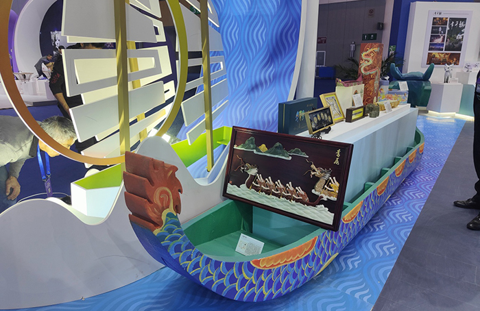 “中国龙舟文化之乡”瓯海制作的参展作品亚运龙舟模型