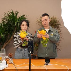 11月13日,在金华市婺城区罗店镇金佛手果园共富工坊,工作人员在直播推销佛手。新华社记者 翁忻旸 摄