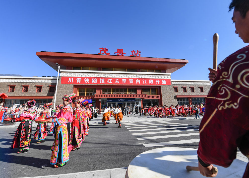 岷江河谷,风带喜声。11月28日,中国最大羌族聚居地四川省阿坝藏族羌族自治州茂县开通动车,人们以藏羌风情载歌载舞,彼此欢庆。至此川青铁路成都至镇江关段,经过12年建设,首次贯通运行。