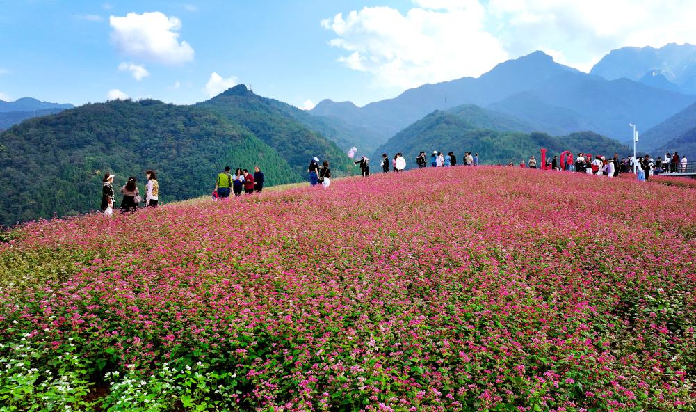 荞麦岭是蓝田县依托秦岭风光打造的文旅体验区。行进其间美不胜收:远处是连绵起伏的秦岭,眼前是1001亩红粉白相间的荞麦花,路旁还有荞麦制成的特色美食。今年以来,荞麦岭游客接待量超过115万人次,带动周边5个村1250户群众增收。
