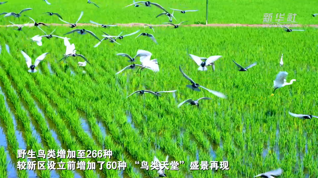 蓝绿交织、清新明亮、水城共融,新区生态密度正在快速提升。白洋淀水质稳定保持在Ⅲ类,野生鸟类增加至266种,较新区设立前增加了60种,“鸟类天堂”盛景再现。