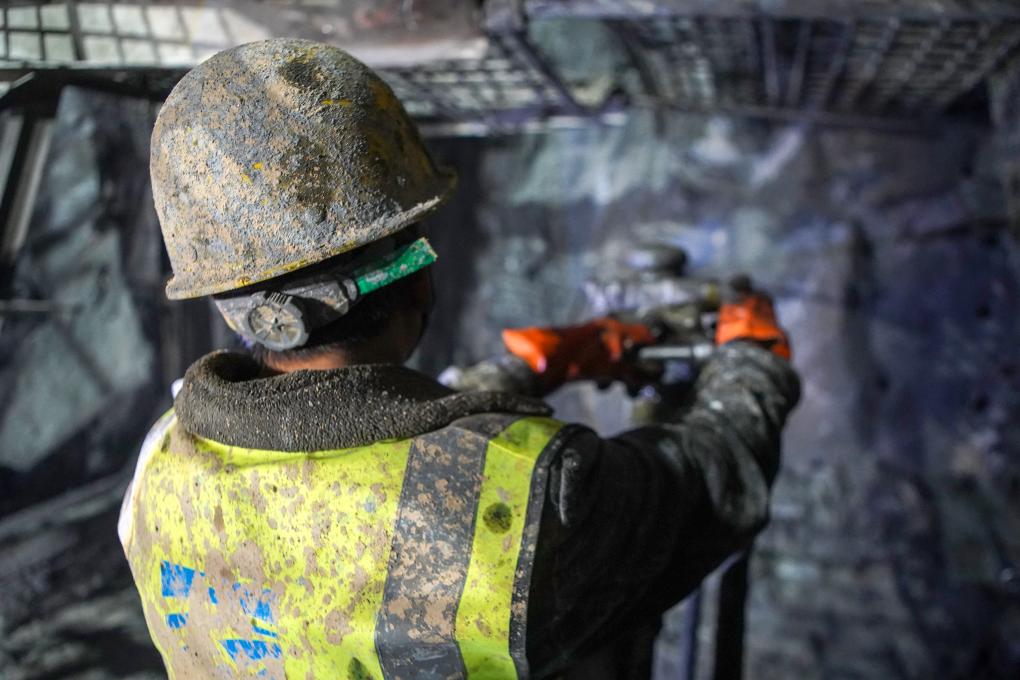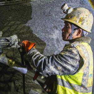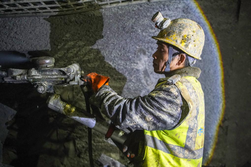 普巴隧道施工现场正在施工的工人。新华社记者 邵泽东 摄